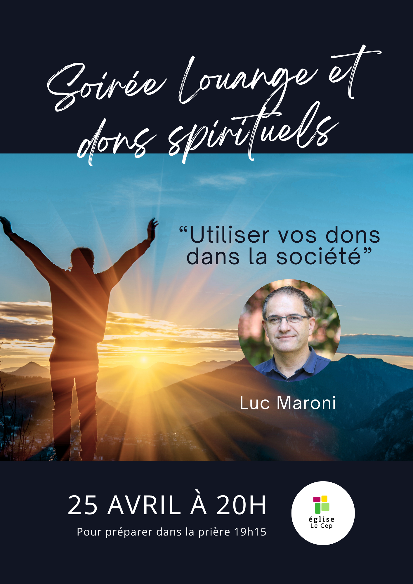 25avr20 h 00 min22 h 30 minFeaturedSoirée Louange & dons spirituels20 h avec Luc Maroni